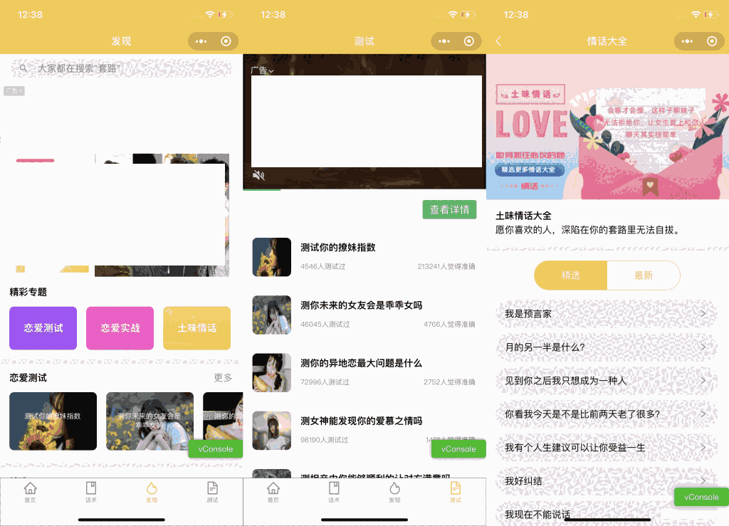恋爱话术小程序源码-土味情话,恋爱导师支持多种流量主模式
