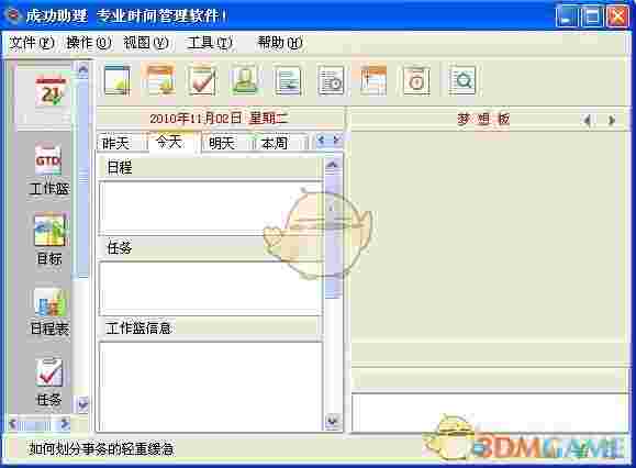 《成功助理 5.4》是一款用于帮助用户惊醒时间管理的软件,这款软件具有高效时间管理原则、设计日程、任务功能等,软件内的功能非常丰富,操作也很简单,是一款非常不错的软件,感兴趣的小伙伴欢迎下载使用噢!