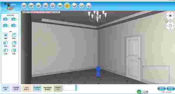 5)布置完成看看三维图,点击上方“三维空间”就可看到了,中间的调整选项可以在不同的方位和效果来调整。