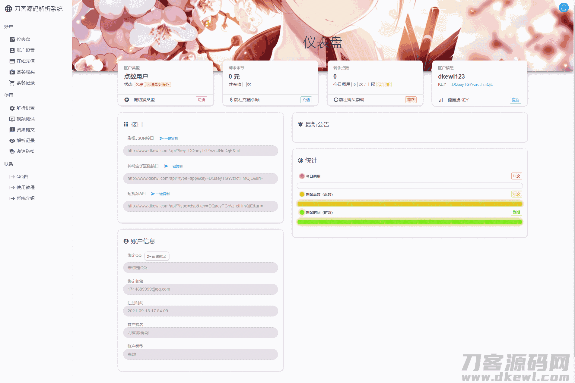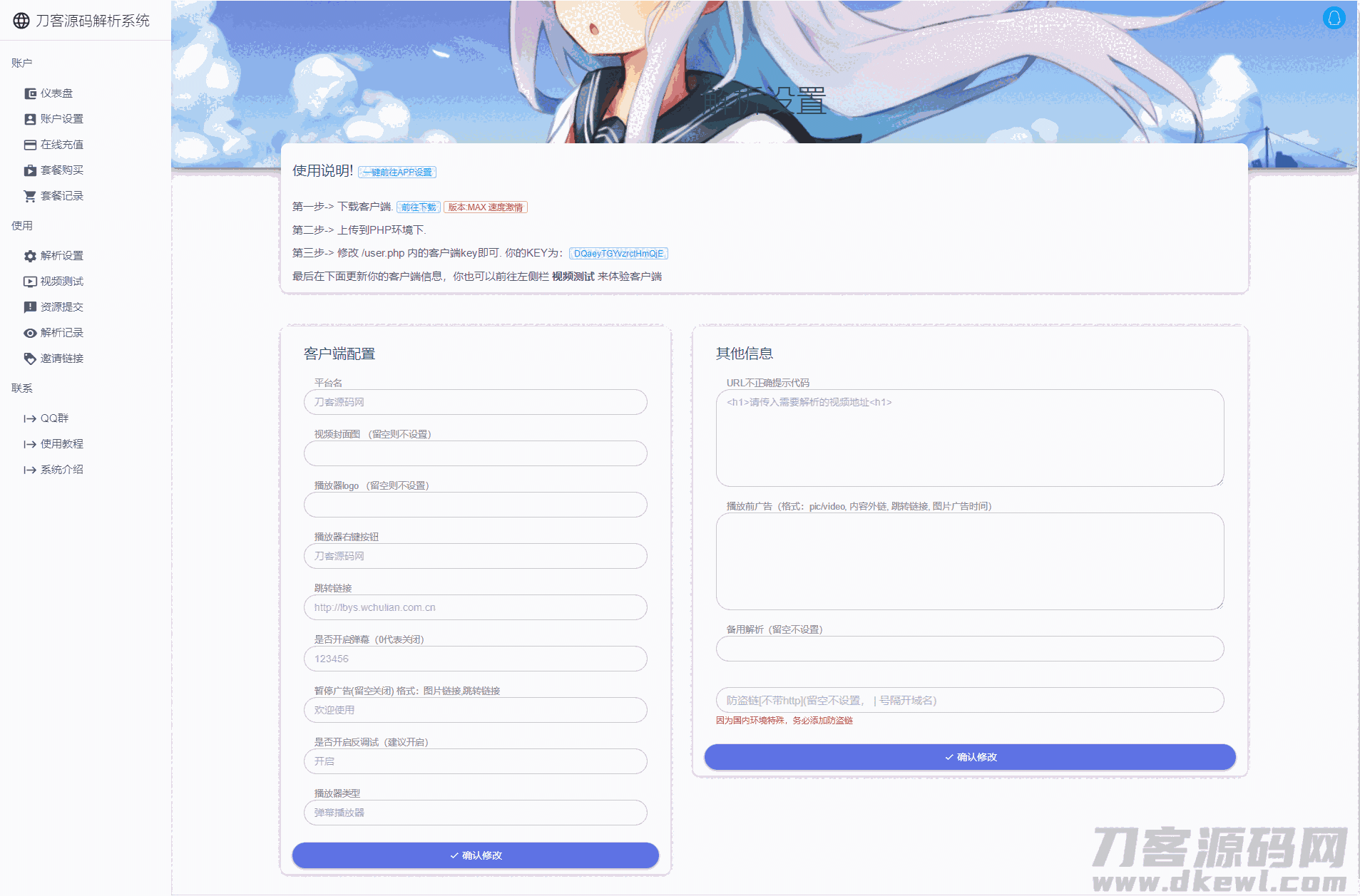 本源码包含解析计费系统,支持:各大VIP站、短视频的解析;客户端接口支持:APP播放API接口、网页播放API接口、JSON接口;播放器支持:弹幕播放器、DP播放器、CK播放器和直连播放;源码简单,购买后无需更改代码,全局后台配置