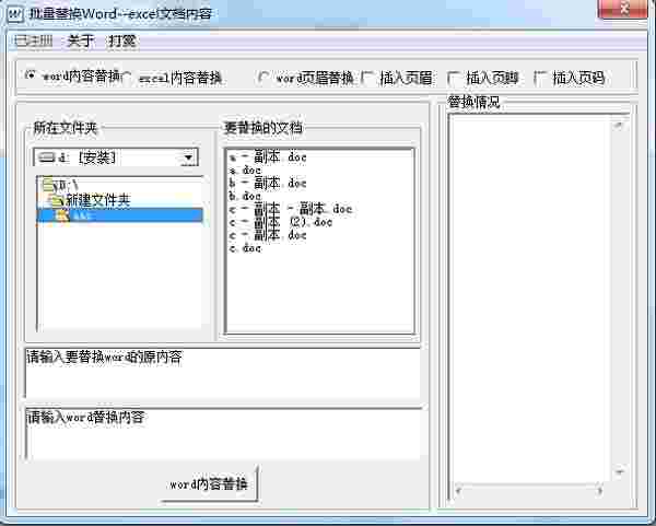 批量Word EXCEL内容替换工具是一款简易实用的EXCEL及Word文档内容的工具,如果是同一内容可以批量替换文档,节省操作时间,使用也非常方便,给用户带来便捷。有需要的小伙伴快来下载吧!
