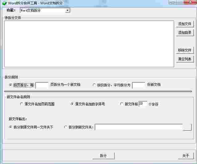 敏捷Word批量拆分合并工具可以批量将Word文档按页或份数分拆为多个Word文件,或将多个Word文件合并为一个Word文档。拆分方式可以按页拆分,如每10页或100页拆分为一份。