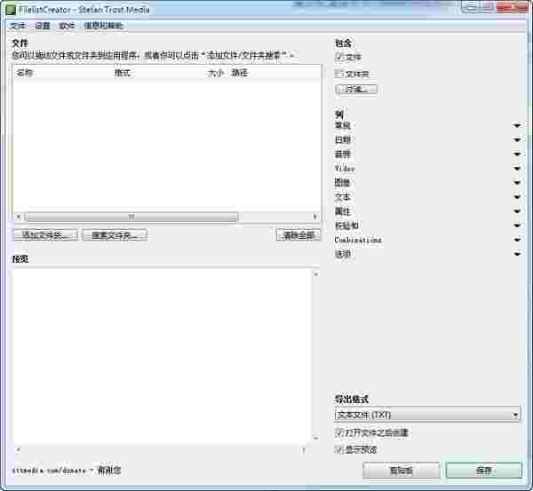 文件列表生成器是一款专业的档案清单制作的工具软件。软件可以帮助使用者制作文件的档案清单,方便使用者更好的分类和管理文件。软件也支持将档案清单导出保存为txt文本文档或是jpg等格式的图片。软件的功能排布很直观,可以快速找到你需要的功能。