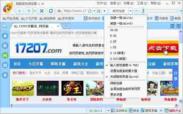 新服游戏浏览器是一款专业的游戏浏览器的软件工具,浏览器支持内核游戏加速、自动喊话、老板键等等游戏辅助功能,帮助用户提升上网体验。非常方便快捷,软件界面简约,布局直观清晰。操作简单,容易上手,是一款十分实用的工具。