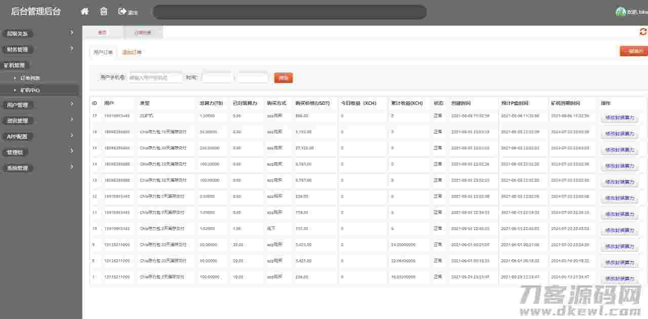 1、本系统为用usdt购买矿机,并支持多种币种,上交易所以后,USDT充值,官网行情数据接口 平台转账,coinbase接口所有币种自动换算RMB