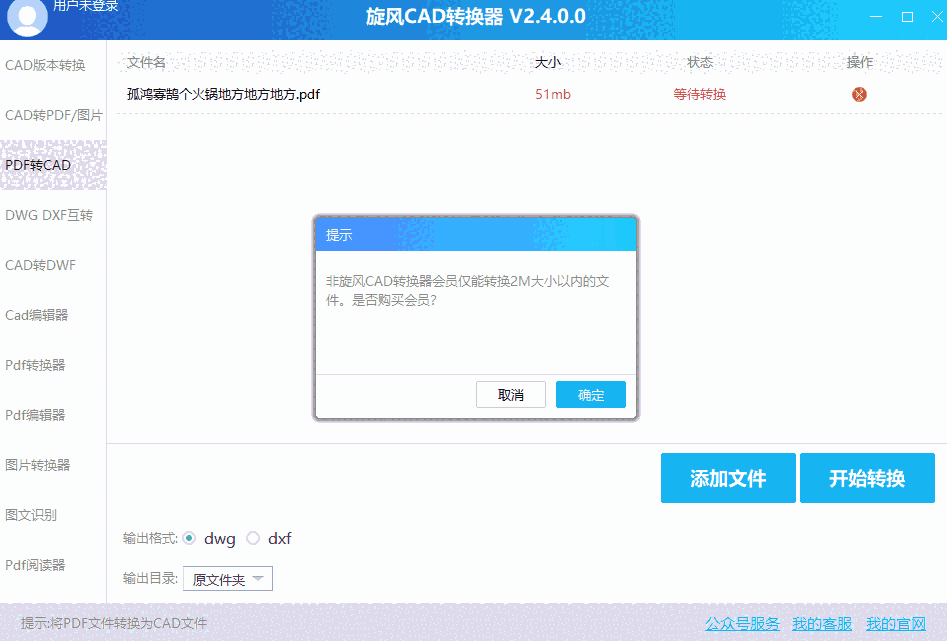 可将PDF格式的稿纸转换为可编辑的CAD文件,支持选择不同的输出版本。
