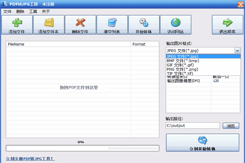 选择一个输出图片格式:JPG,BMP,GIF,PNG,TIF