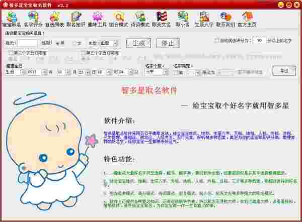 智多星起名软件为智多星工作室原创作品,让您彻底远离破解软件中包含的后门病毒.并终身免费在线自动升级!