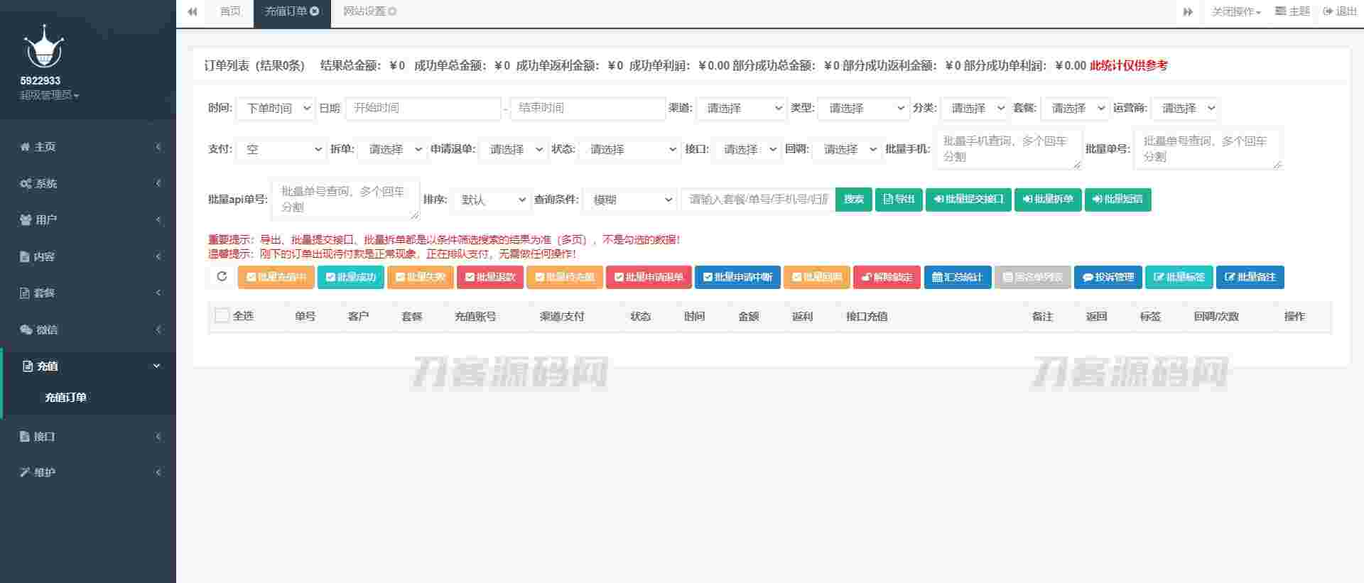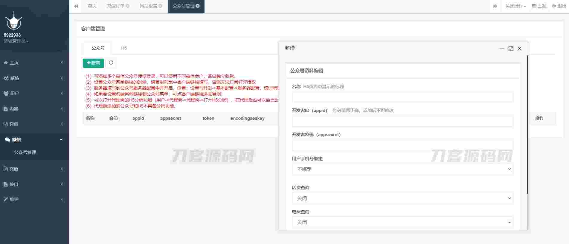 功能简介:大猿人中控系统目前是市面上用的最多的电话费充值中控系统,支持代理分销、公众号H5、API接口对接等功能,也是目前最完善的一款中控系统,前端全开源,已破解免授权!