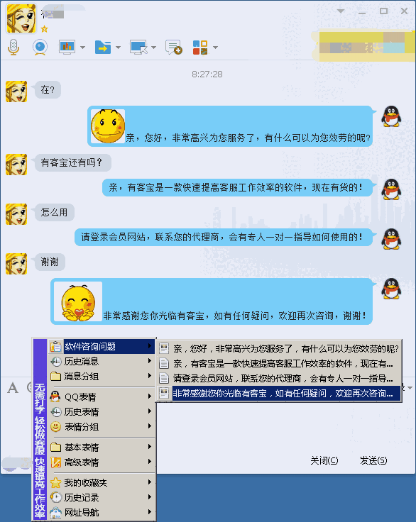 有客宝快捷回复软件是一款专业的快捷回复的软件工具,软件适配了qq、飞信、微信等聊天软件。软件支持发送表情、密码管理、网址收藏等等功能。非常方便快捷,软件界面简约,布局直观清晰。操作简单,容易上手,是一款十分实用的工具。