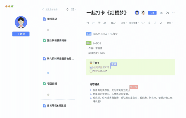 多端数据可实时更新同步,随时随地查看处理笔记,支持多人协作创建文档。