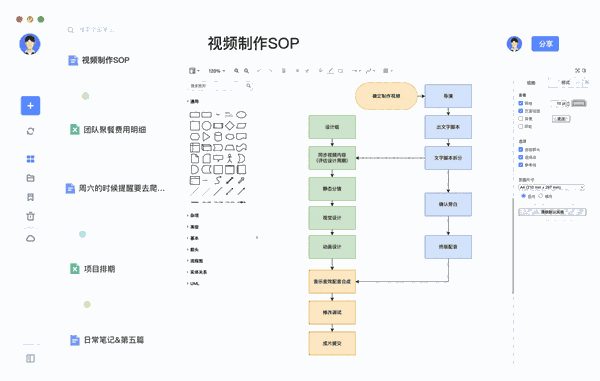 支持在笔记中插入脑图、流程图、白板,内容呈现更加丰富、直观