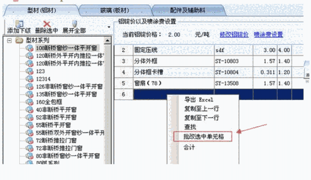 根据客户所需窗型,在系统中画图绘制, 系统即可根据自录入的型材参数自动算料