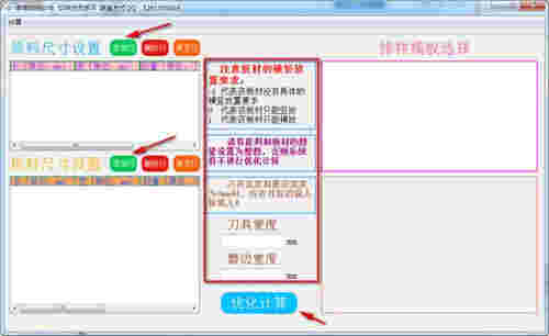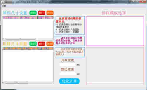 添加原料和板材的尺寸,输入刀具和磨边宽度,点击优化计算,选择需要的模板即可