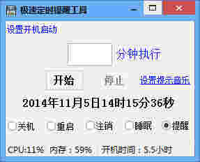 极速定时提醒工具是一款专业的的时间提醒工具软件,软件支持定时关机、重启、注销、锁定,在此之前会提醒使用者,十分方便快捷,界面简约,布局直观清晰,操作简单,极易上手,是一款不可多得的利器。