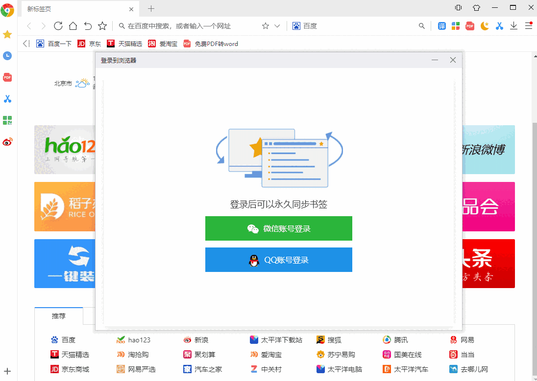 微信扫码登录,可在多台设备间 云同步书签和设置
