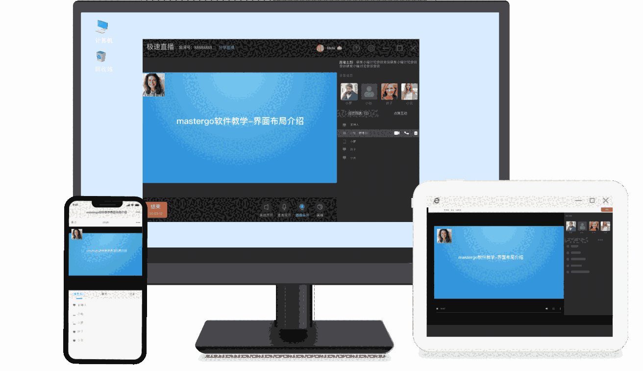 极速直播是一款高清超低延迟的直播、视频会议软件。支持电脑手机开播网页、微信扫码快速加入,适用于直播教学、多人小班课、双师课堂等满足学校、企业、教培机构的直播与会议需求。
