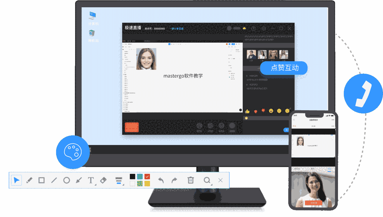 支持点赞互动、桌面画板,实时连麦直播内容保存回放
