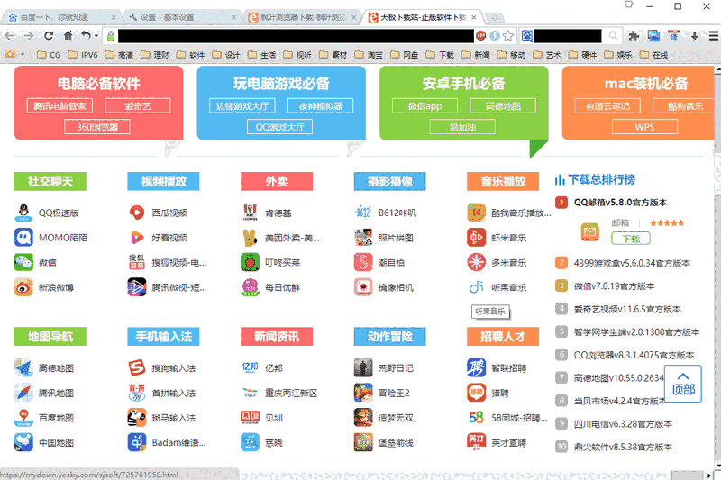 枫叶浏览器是一款专业的网页浏览器的软件工具,软件支持鼠标手势、密码保存、隐私保护、超级拖拽等等功能提升用户的上网体验。非常方便快捷,软件界面简约,布局直观清晰。操作简单,容易上手,是一款十分实用的工具。
