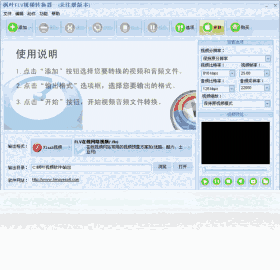 枫叶FLV视频转换器是一款专业的FLV视频格式转换的工具软件,支持FLV和如AVI、mp4、AAC、wav等各类音视频文件之间的互相转换。十分方便快捷,界面简约,极易上手,是一款不可多得的利器。