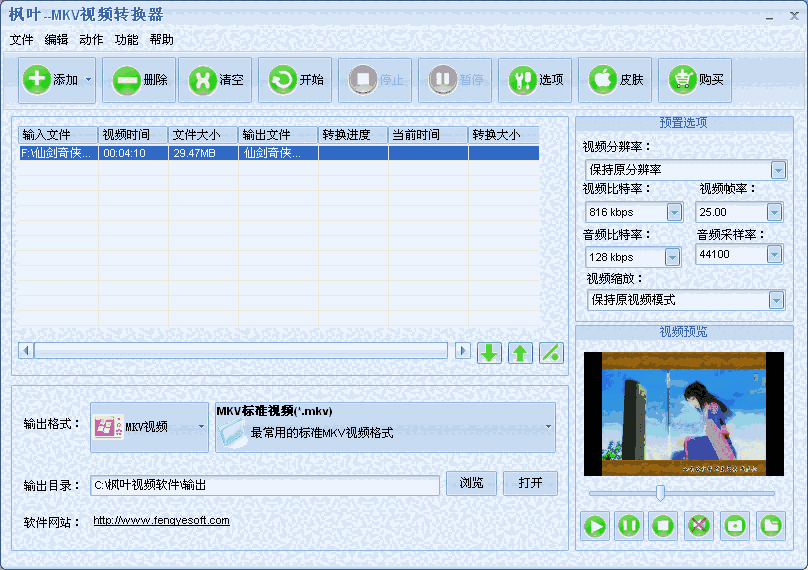 枫叶MKV视频转换器是一款专业的mkv视频格式转换的工具软件,支持mkv与如AVI、mp4、AAC、wav等各类音视频文件之间的互相转换。十分方便快捷,界面简约,极易上手,是一款不可多得的利器。