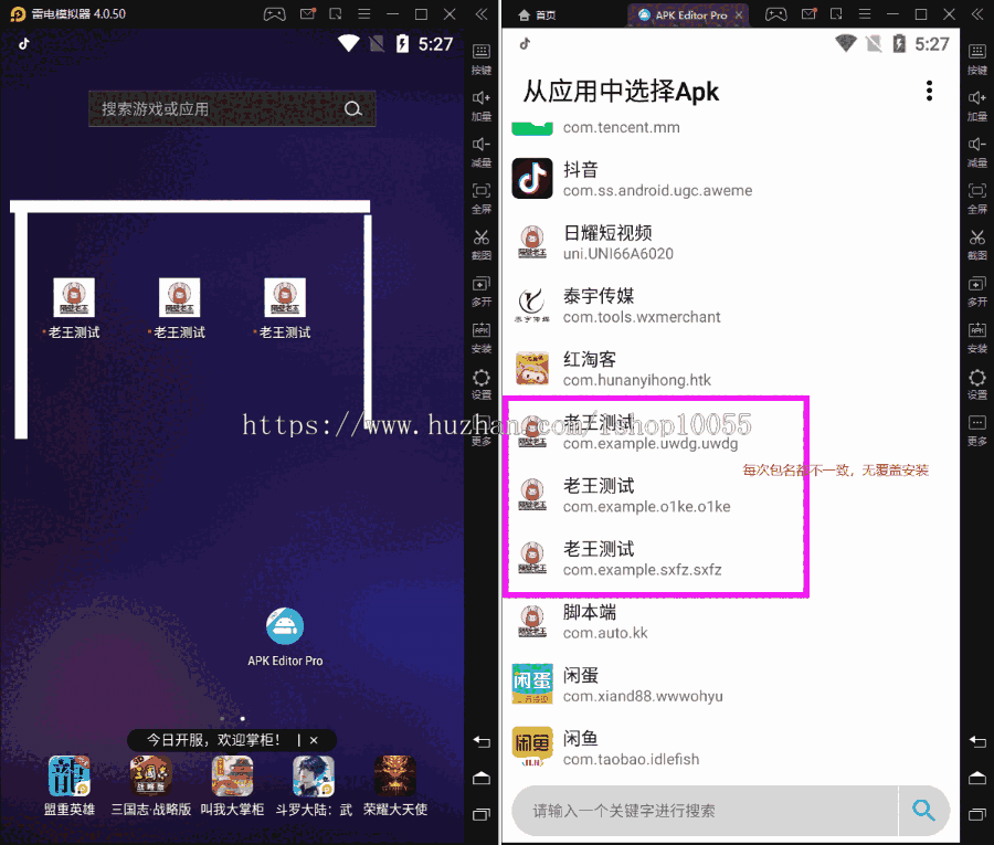 也可以上传打包好的apk五分钟自动更换包名和签名,