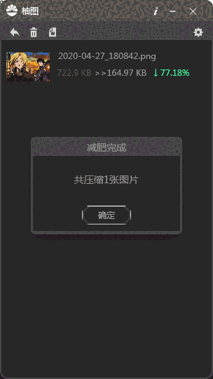 柚图是一款专业的图片压缩的工具软件,使用者只需将需要压缩的图片拖拽到软件里,设置好参数就可以压缩了。十分方便快捷,界面简约,布局直观清晰,操作简单,极易上手,是一款不可多得的利器。