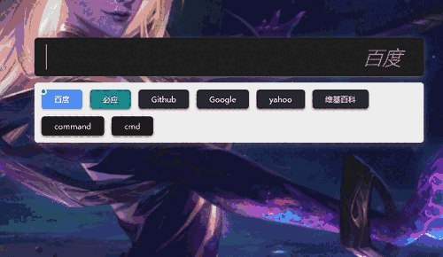 默认支持百度、必应、GITHUB、谷歌、维基百科、cmd等多种搜索引擎