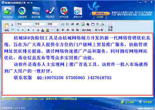 桔城SEO伪原创工具是由桔城网络倾力开发的新一代网络营销优化系统,旨在为广大商人提供全方位的门户级网上贸易推广服务,协助管理网址优化排名提前,通过网络快速推广产品和服务。同时拥有网络网站优化、商业信息发布等等众多实用推广功能。
