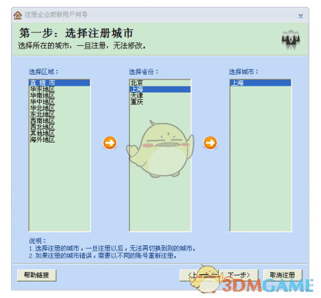 在本界面中,需要选择注册的城市,操作流程如下: