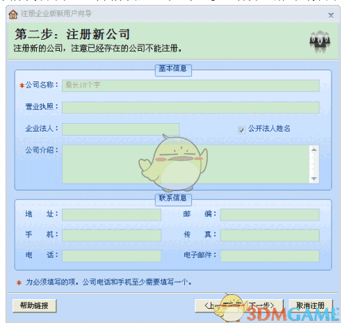 注意:已经被注册过的公司不能再被注册。