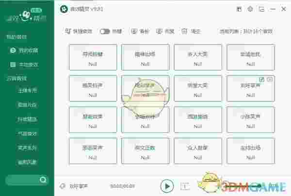 软件内包括群众笑声、尖叫声、掌声、婴儿笑声、狗叫声、打呼噜、打喷嚏、乌鸦飞过等等40种音效在内另增加36个自定义音效按钮!