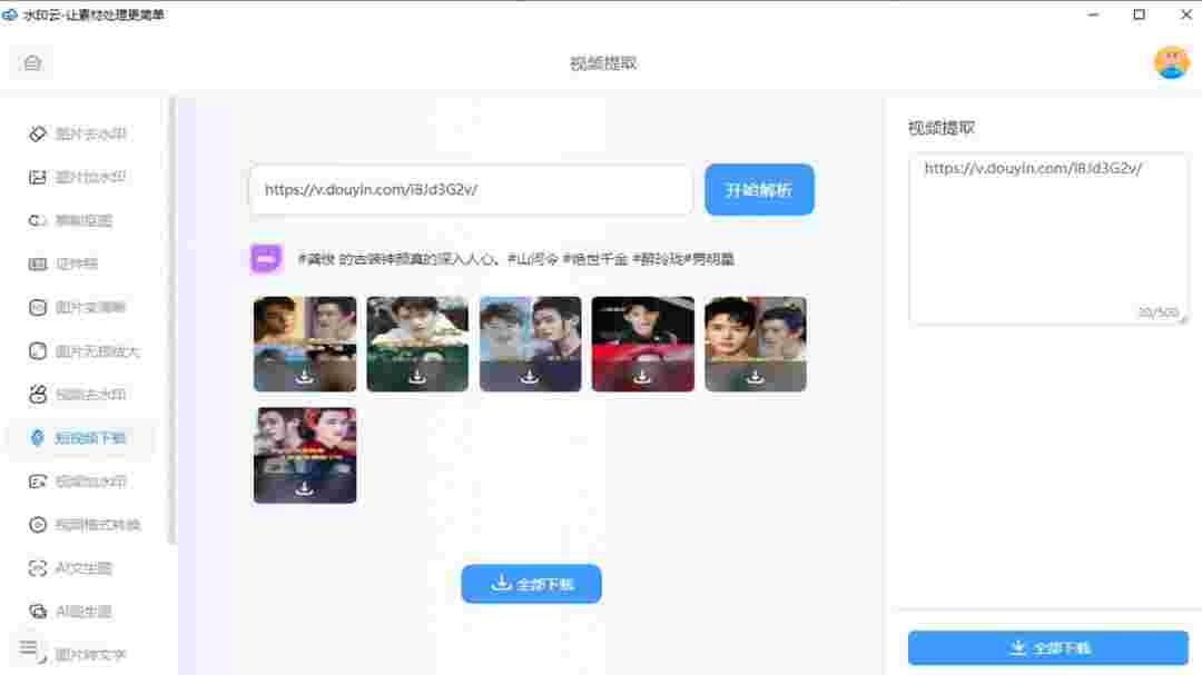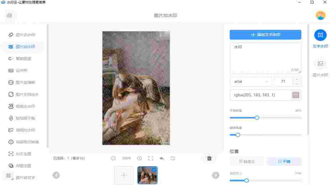 水印云是一款非常专业的图片视频处理软件,软件功能十分强大,操作简单易用,支持bmp、jpg、jpeg、gif、webp等多种图片格式,拥有图片去水印、图片加水印、视频去水印、视频加水印、智能抠图、视频格式转换、视频加字幕、视频音频分离等功能,满足用户的使用需求,感兴趣的小伙伴们赶快下载使用吧!