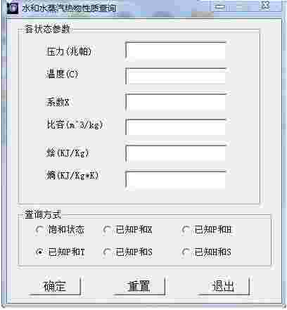 水和水蒸汽热力性质查询工具是一款专业的水和水蒸气热力性质的查询工具软件。软件可以帮助使用者通过压力、温度、系数X、比容等数值来查询计算水和水蒸气的热力性质,并且支持多种查询方式,使用者可以自由选择,非常方便快捷。
