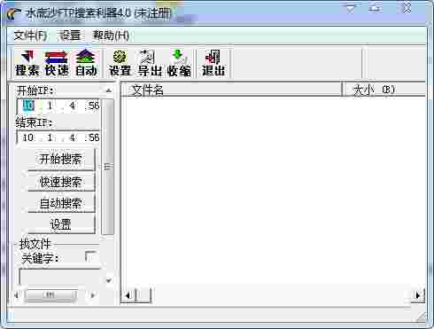 水底沙FTP搜索利器是一款专业的FTB搜索的软件工具,软件支持。自动搜索、智能识别局域网地址,支持结果导出。非常方便快捷,软件界面简约,布局直观清晰。操作简单,容易上手,是一款十分实用的工具。