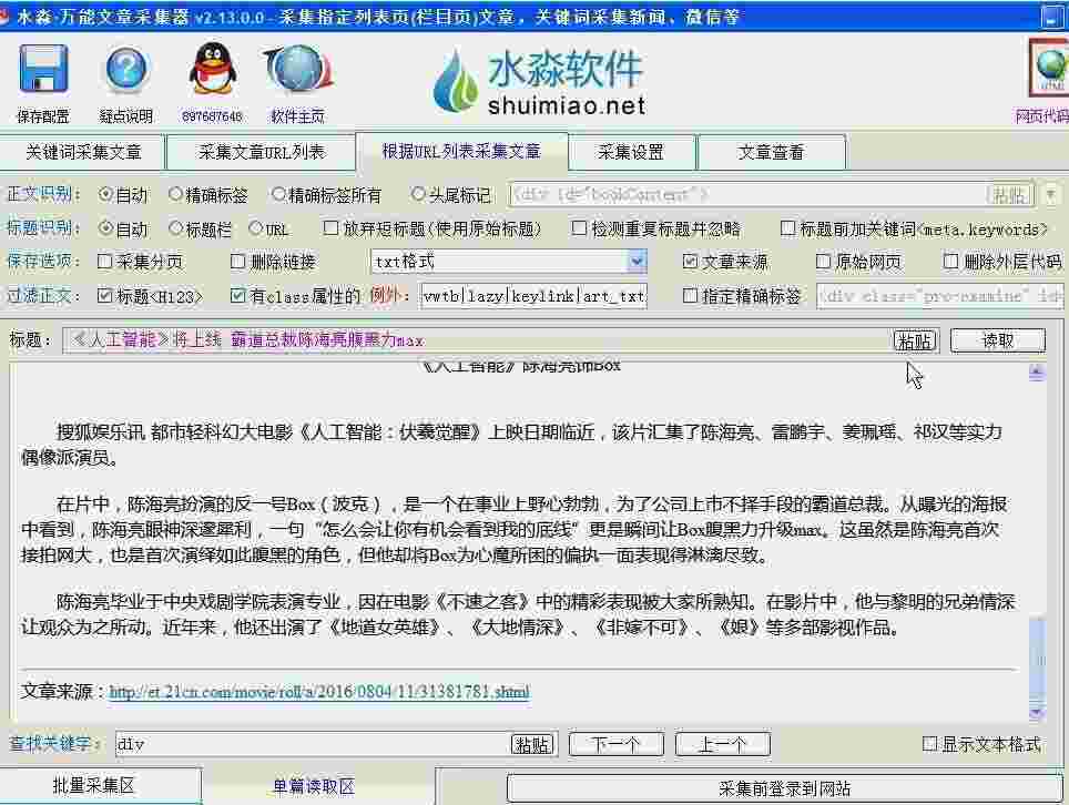 依托于水淼软件独家万能正文识别智能算法,可实现任何网页正文自动提取准确率95%以上。