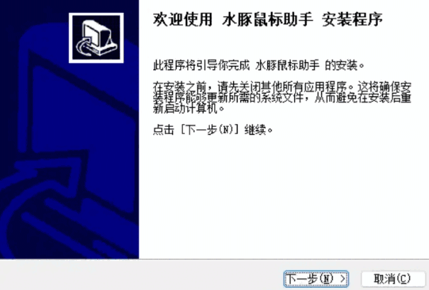 1、首先我们打开水豚鼠标助手的安装包,点击下一步。