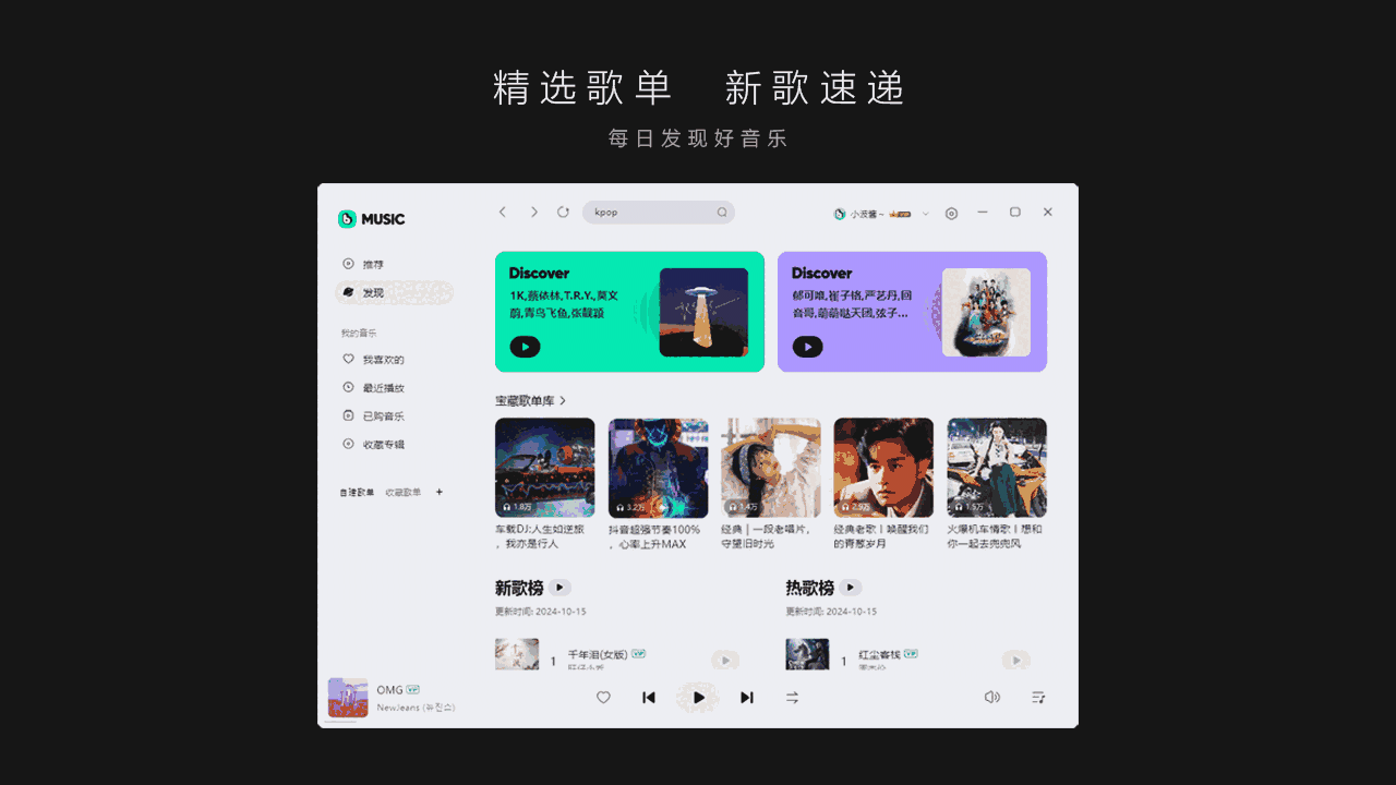 3、支持用户创建和分享个性化歌单,方便用户整理和分享自己喜欢的音乐。