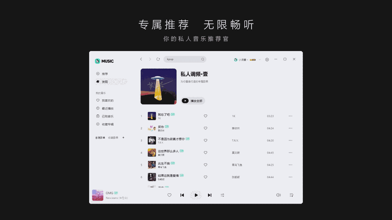 2、利用先进的算法分析用户的收听历史和喜好,智能推荐符合用户口味的歌曲。