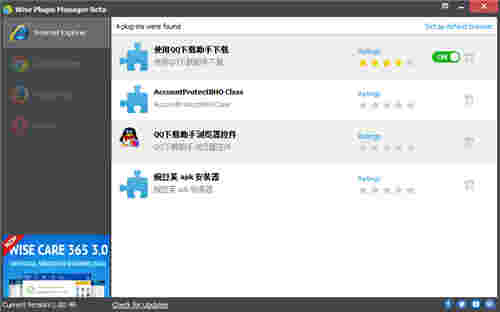 对扫描到的插件、加载项、工具条,Wise Plugin Manager会显示评分,这些评分来自于其他用户,可以作为非常好的参考。