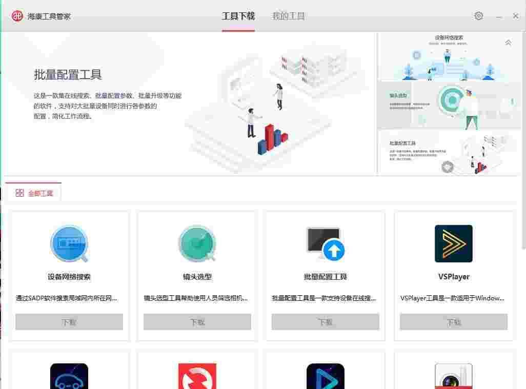 海康工具管家是一款专业的海康各类软件的管理工具软件。软件整合了几乎所有海康出品的与设备配套的软件,帮助使用者得以只用一个软件就可以对所有海康软件进行统一管理,提供下载与更新软件的服务。同时,软件也支持对硬件设备进行编辑与修改。