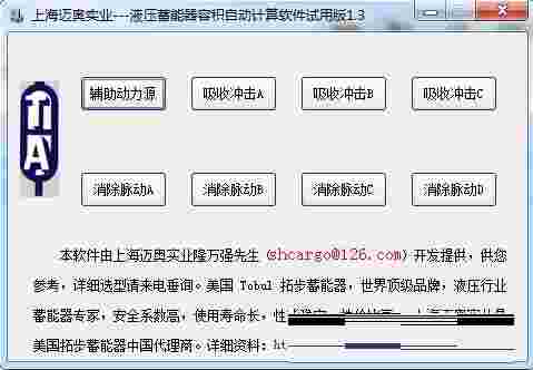 液压蓄能器容积计算软件是一款专业的液压蓄能器容积的计算工具软件。使用者可以通过软件来计算液压储能器容积,软件支持辅助动力源、吸收冲击A\B\C,消除脉动A\B\C\D的功能。软件的界面简约,布局直观清晰,是一款功能强大的软件。