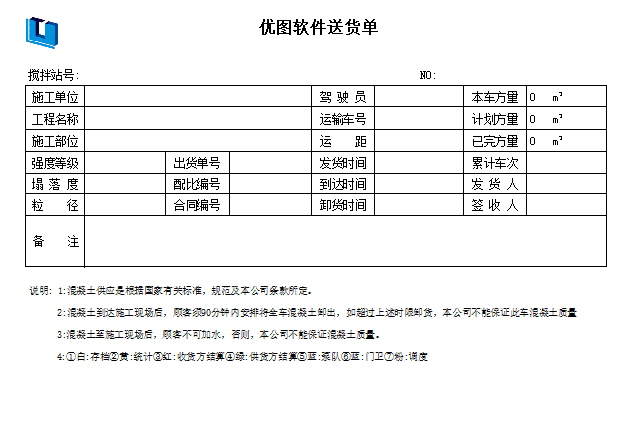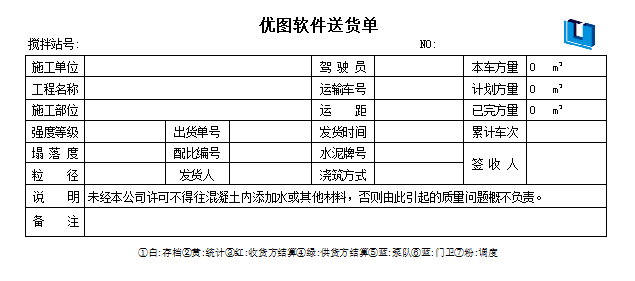优图混凝土送货打印软体专门应用于销售单打印、送货单打印、发货单打印、出货单打印、收款收据打印等涉及到各种单据打印要求的计算机软件,此款销售送货单打印软件系统设计简单,易用,针对性强,主要就是针对快速打印单据行业设计,具有运行快、开单效率高特点,支持自定义打印模板样式。