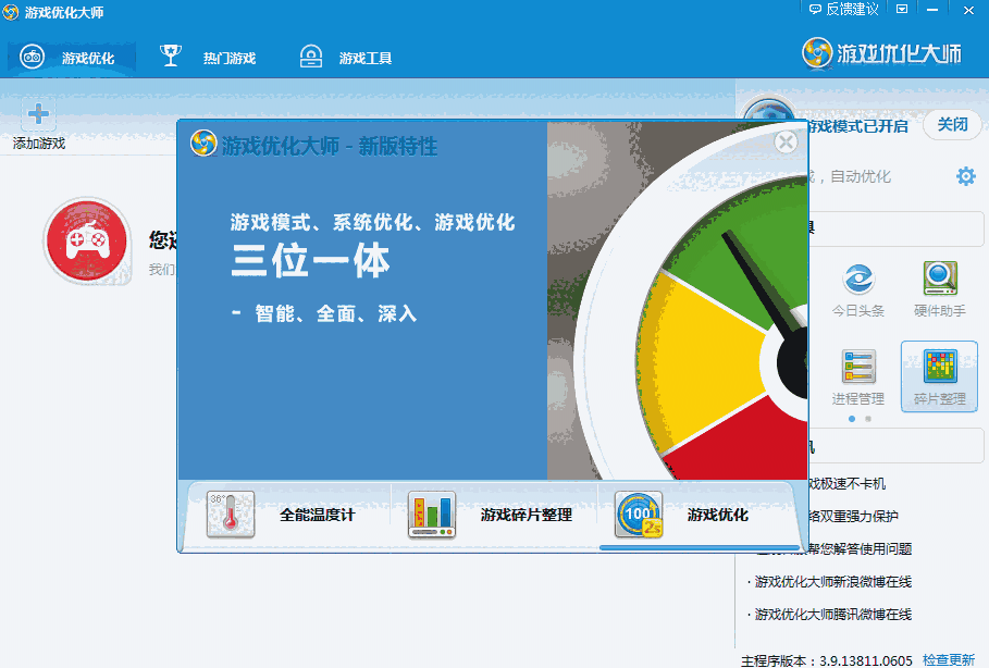 游戏优化大师专为游戏玩家们打造的游戏优化工具,建立在不同电脑、不同配置的情况下,游戏优化大师都致力于帮助玩家有优化电脑环境达成能够游戏的最佳状态,减少或完全解决游戏卡死等问题,是一款很不错的软件,我们在日常生活中都能够使用到,对该软件感兴趣的小伙伴千万不要错过!