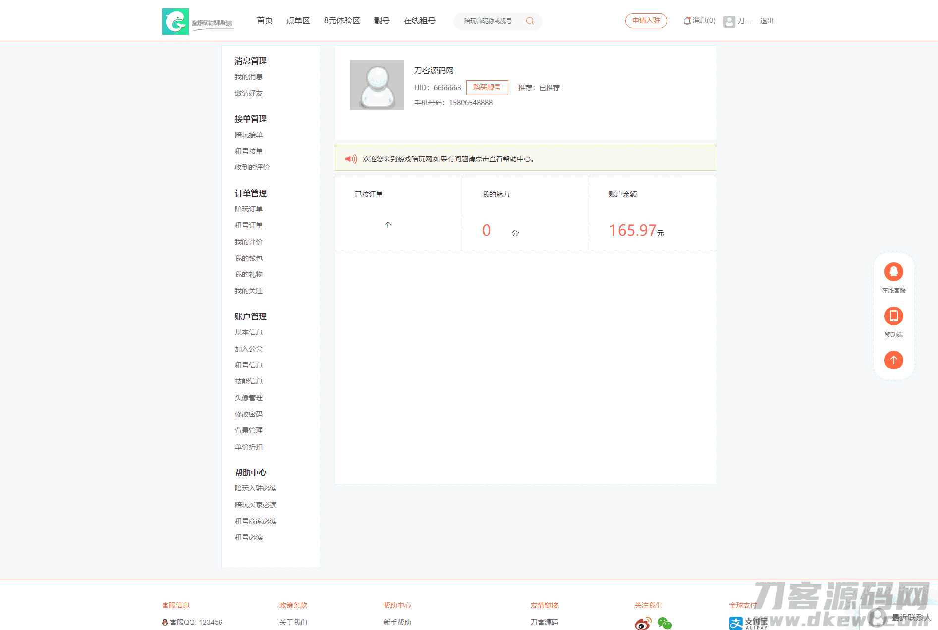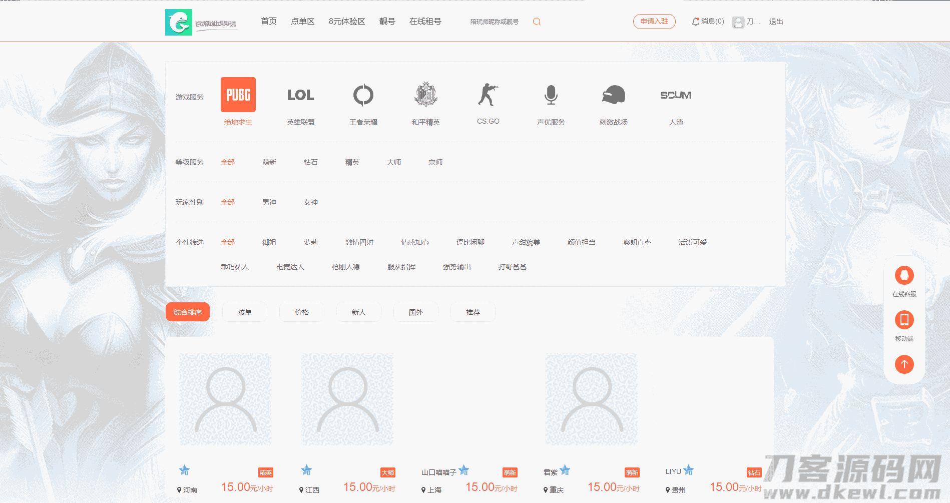 游戏陪玩系统/在线租号系统/小姐姐陪玩任务系统/网游主播任务威客平台源码/绝地吃鸡LOL在线下单/带手机端/声优线上游戏任务系统网站源码