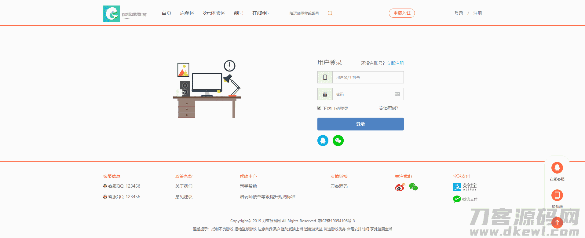 9080免费资源分享,PHP源码、网站源码、游戏源码、模板插件、软件工具、网络教程、为中国站长提供一站式源码下载 » 游戏陪玩系统/在线租号系统/小姐姐陪玩任务系统/网游主播任务威客平台源码/声优线上游戏任务系统网站源码_站长亲测