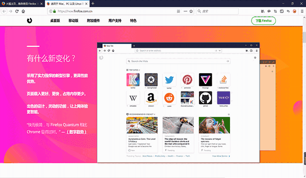 一、速度之王:这是目前为止最快的火狐,无论是技术基准测试还是你每天经常进行的操作,它都有不错的表现。