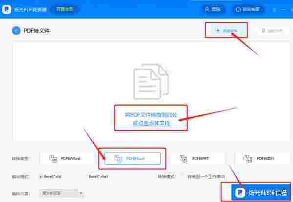 进入烁光PDF转换器的PDF转文件功能后就可以点击右上方的添加文件或者拖拽文件添加,然后选择烁光PDF转换器的PDF转Excel功能,完成后点击右下方开始转换就可以了,开始转换之前可以选择烁光PDF转换器左下角输出目录选择输出路径,方便查找。