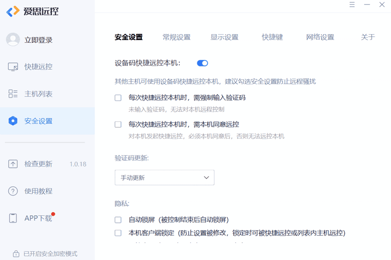 爱思远控是一款专业的远程控制的软件工具,软件支持远程办公、远程管理监控电脑,支持手机或电脑远程控制电脑。非常方便快捷,软件界面简约,布局直观清晰。操作简单,容易上手,是一款十分实用的工具。