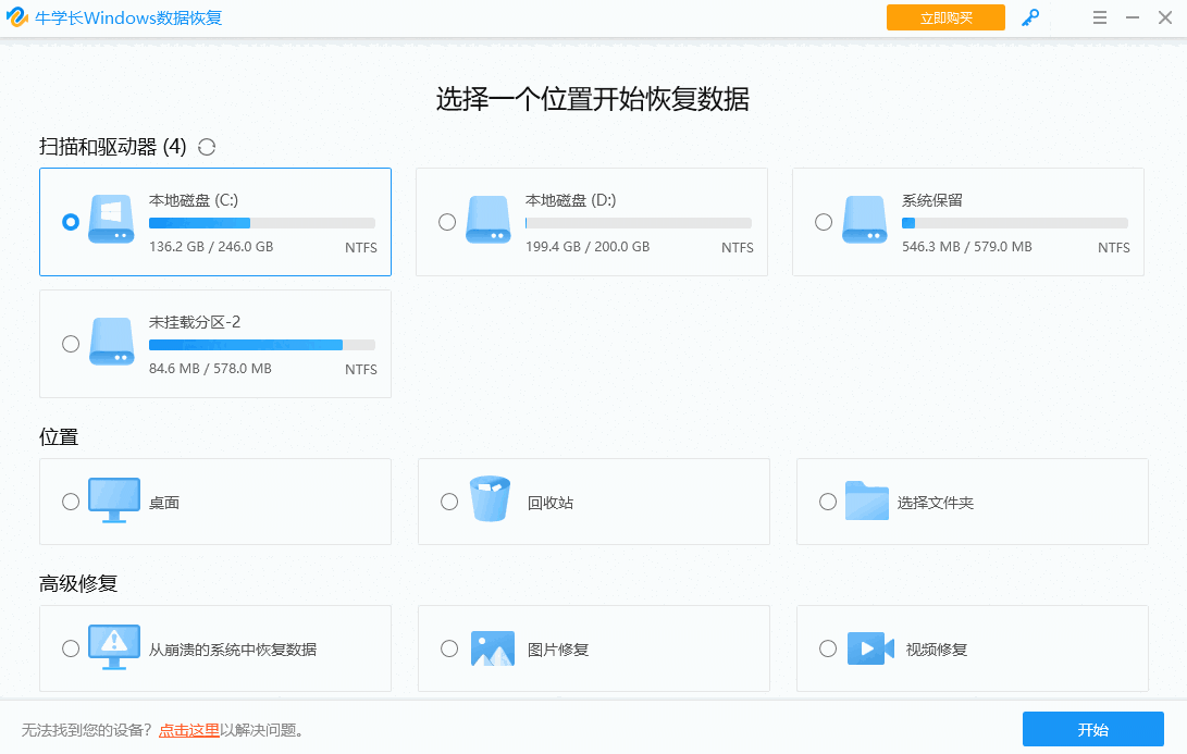 牛学长Windows数据恢复工具是一款数据恢复工具,它包含了许多我们生活中需要用到的功能。这款软件拥有简洁的界面,但是它的功能很强大。我们无论是在日常生活中还是在办公的过程当中,都可以使用这款软件作为我们的工具。